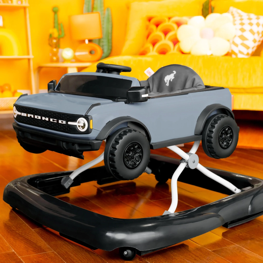Stilska dječja hodalica 4u1 inspirirana kultnim vozilom FORD BRONCO raste s vašim djetetom od 6 mjeseci do 12 kg. Nudi 4 načina uporabe (sjedenje i “vožnja”, guranje i hodanje, kombinirana igra te odvojiv volan s efektima), podesivu visinu u 3 razine, stabilnu široku bazu i udobno perivo sjedalo. Interaktivna svjetla i zvukovi potiču osjetilni razvoj i krupnu motoriku, dok jednostavno sklapanje olakšava pohranu i prenošenje.