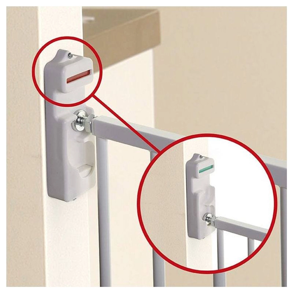 Za uporabu na stubištima kretanje vrata može se ograničiti na jedan smjer pomoću okretne ili uklonjive polugice. Jedinstveni EZY-Check indikator jasno prikazuje stanje zaključavanja – zelena pri ispravnom osiguranju, crvena pri otključavanju. Čvrsta ugradnja na hardver osigurava maksimalnu stabilnost i dug vijek trajanja.