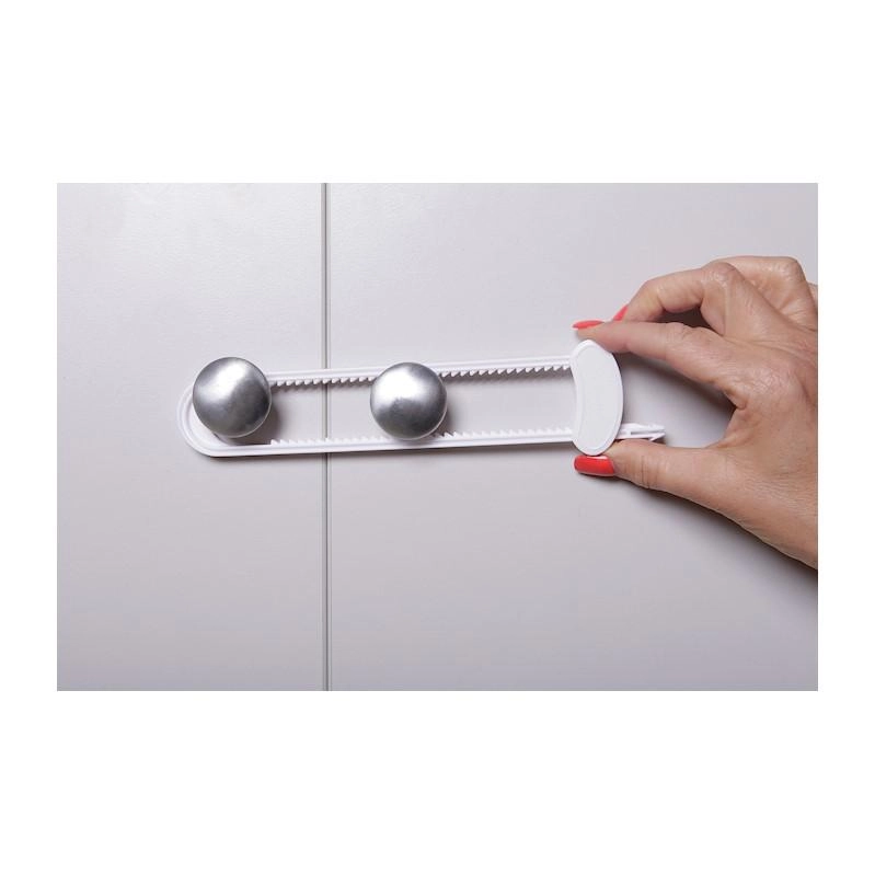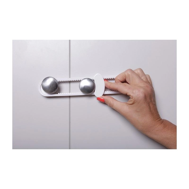 Klizne brave Dreambaby predstavljaju jednostavno i učinkovito rješenje za osiguravanje ormarića od znatiželjne djece. Zahvaljujući kliznom mehanizmu, brava se čvrsto postavlja preko para ručki ili D-ručki i sprječava neželjeno otvaranje.