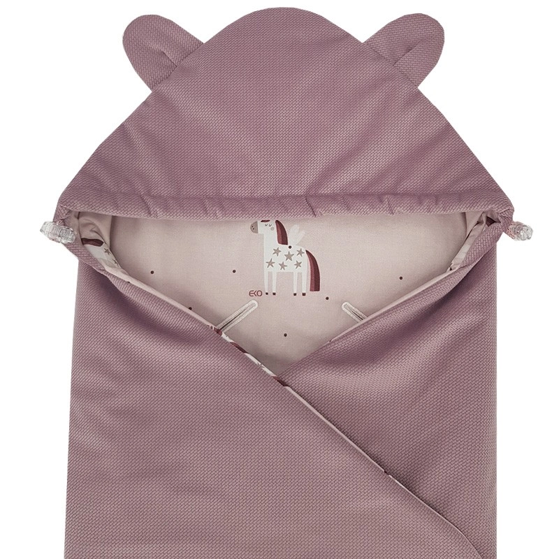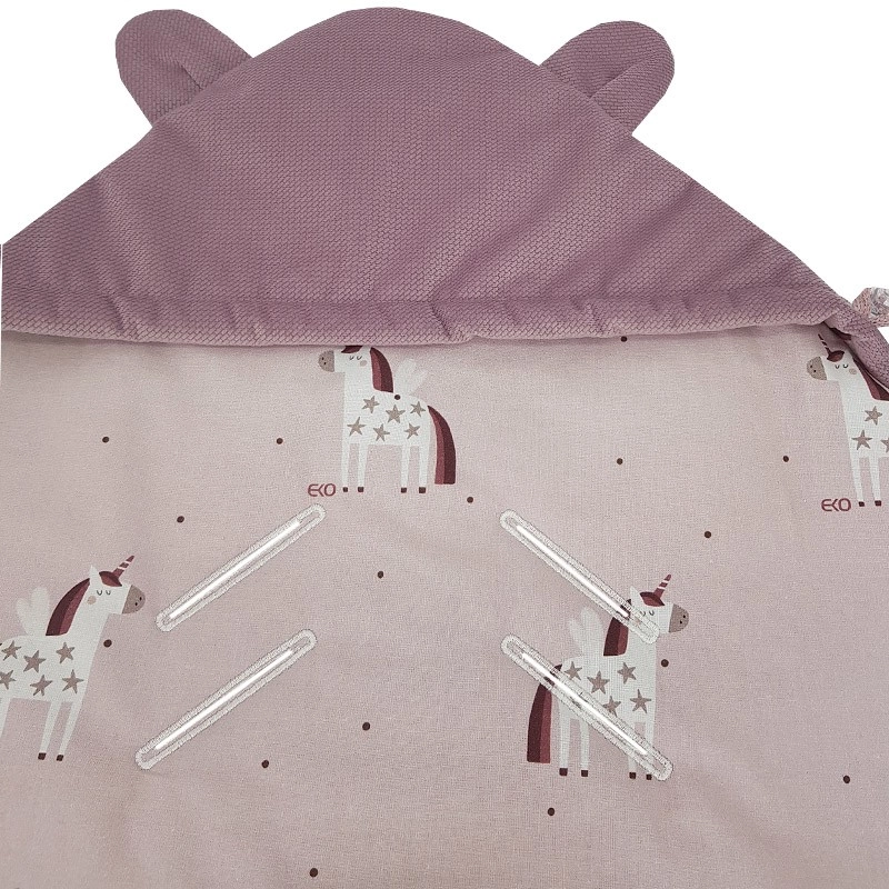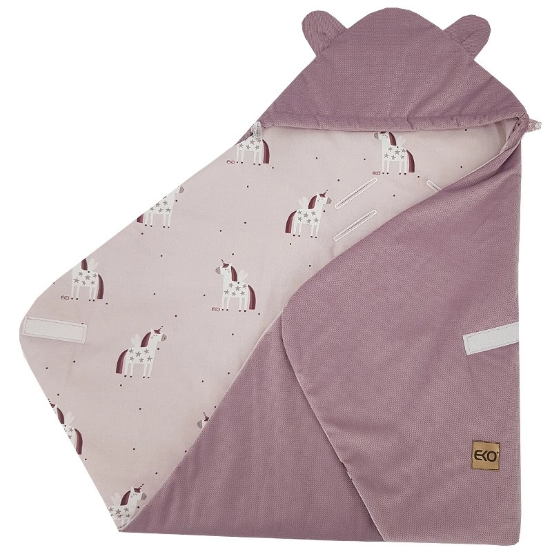 Omotavajući uložak EKO Velvet Unicorn osmišljen je za sigurna i udobna putovanja u autosjedalici te mirne šetnje u nosiljci „jaje” ili kolicima. Mekani VELVET/MINKY materijal s vanjske strane, pamučna podstava s preslatkim uzorkom i hipoalergena ispuna pružaju nježan zagrljaj koji će vašu bebu držati u toplini i udobnosti.