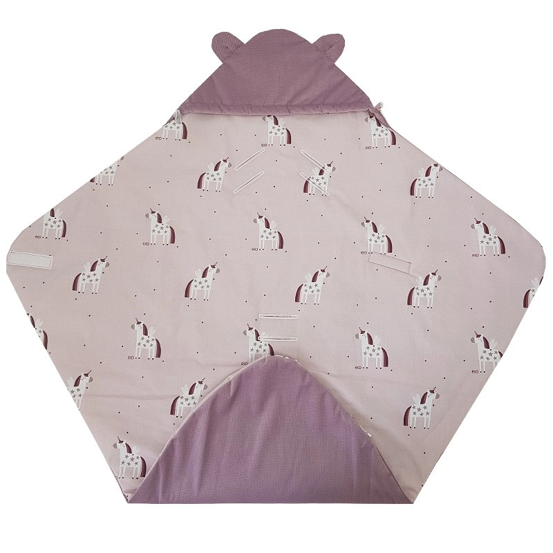 Praktičan omotavajući uložak za autosjedalicu za bebe 3–18 mjeseci u nježnom ružičastom dizajnu s motivom Unicorn. Kombinira mekanu VELVET/MINKY površinu, ugodnu pamučnu podstavu i prozračnu hipoalergenu ispunu. Zahvaljujući otvorima za sigurnosne pojaseve uložak lako pričvrstite bez otkopčavanja pojaseva, a bebu umotate u toplinu i udobnost. Toplinski standard 2,5 TOG za cjelogodišnju uporabu.