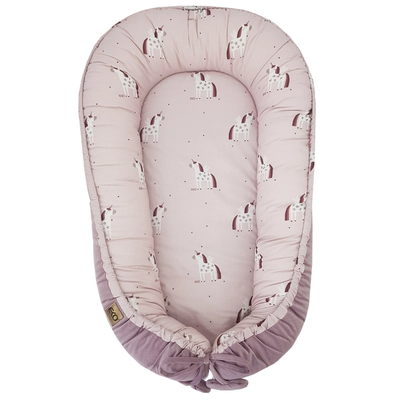 Univerzalno dječje gnijezdo Eko Unicorn 90 × 60 cm stvara bebi ugodno i zaštićeno mjesto kod kuće i na putu. Visoki, mekano podstavljeni rubovi pomažu održati dijete u stabilnom položaju i olakšavaju ležanje na boku, što je praktično osobito kod tegoba s refluksom. Unutarnja strana od nježnog pamuka i mekani velvet na vanjskom dijelu osiguravaju maksimalnu udobnost i toplinu.