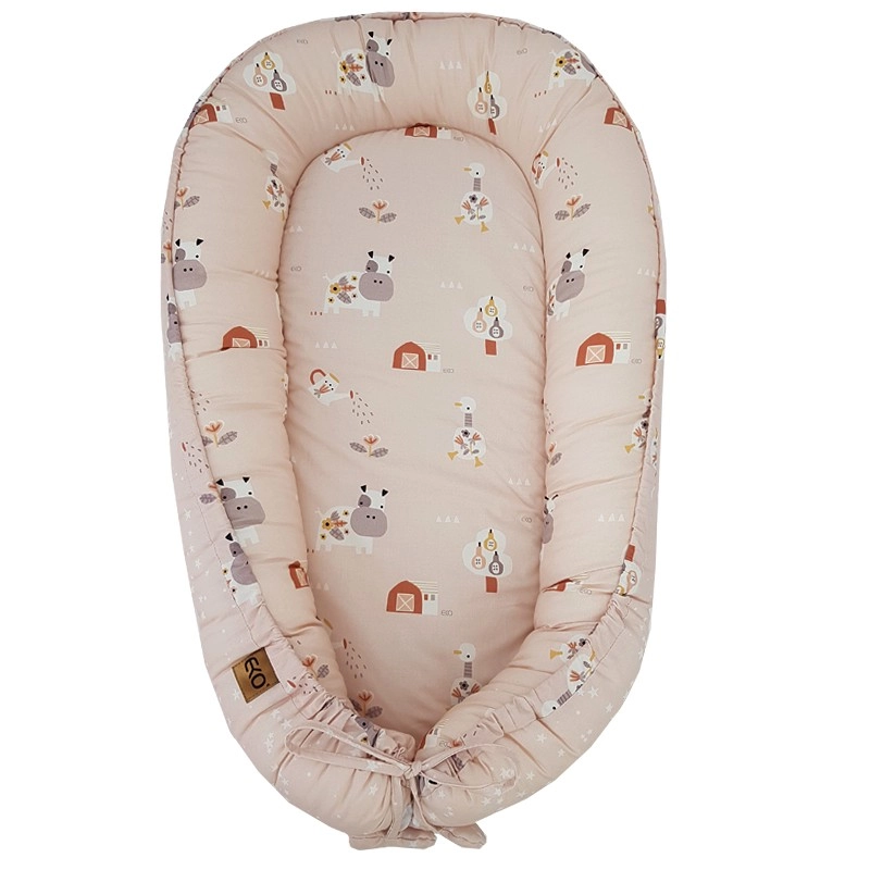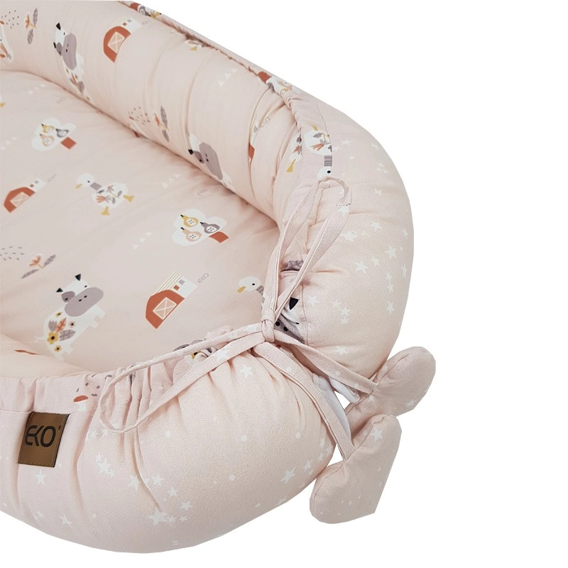 Gnijezdo za bebe EKO My Farm Stars Powder Pink dimenzija 90 × 60 cm dizajnirano je za miran san i udoban odmor pod vašim nadzorom. Visoki rubovi pomažu stvoriti osjećaj ugodnog zagrljaja i olakšavaju bočni položaj, što je posebno korisno kod tegoba s refluksom. Mekana pamučna navlaka i prozračno, hipoalergeno punjenje osiguravaju nježan dodir s kožom i udobnost u svakom položaju.