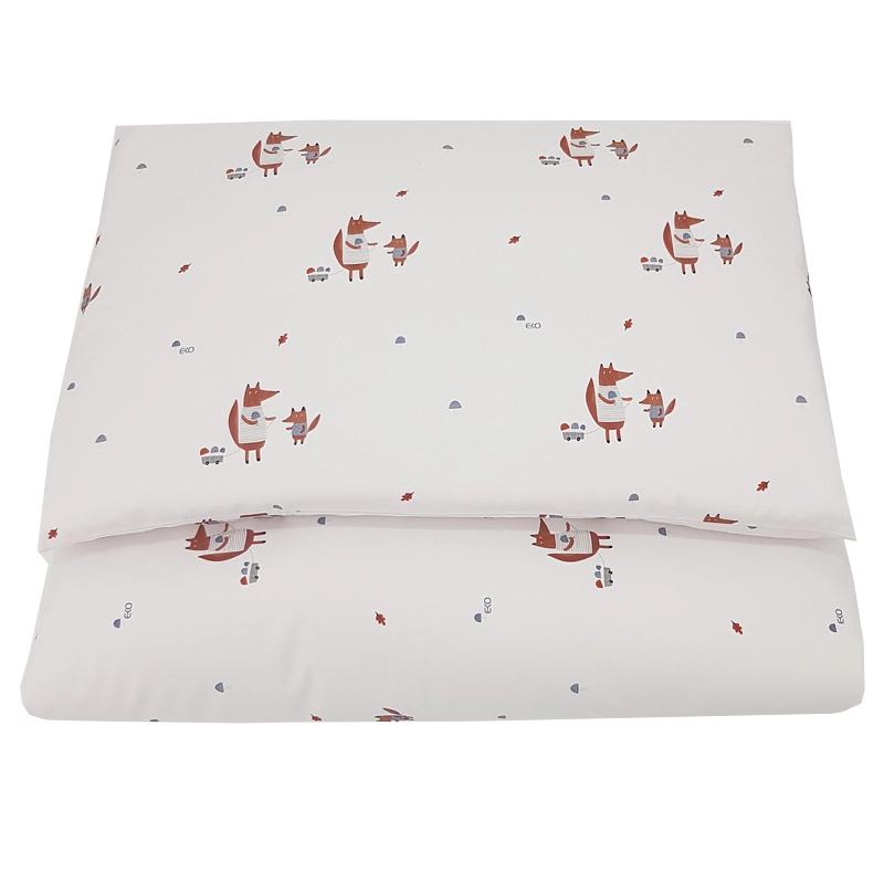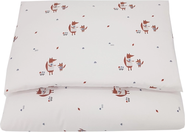 Slatka dječja posteljina s motivom lisica od 100% pamuka osigurava mekan, prozračan i ugodan san. Set sadrži navlaku za poplun 90 × 120 cm i jastučnicu 40 × 60 cm, idealno za dječji krevetić.
