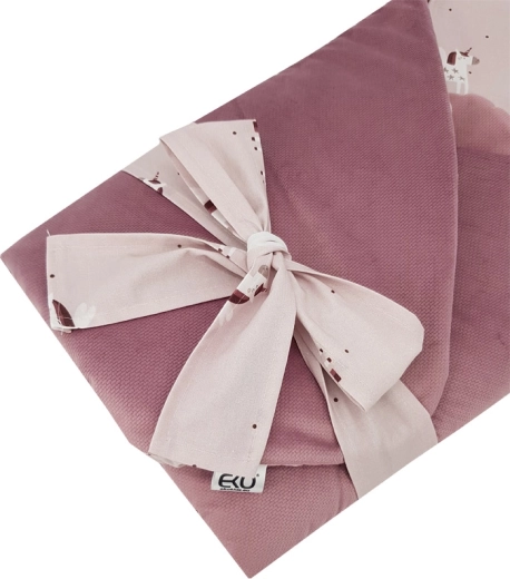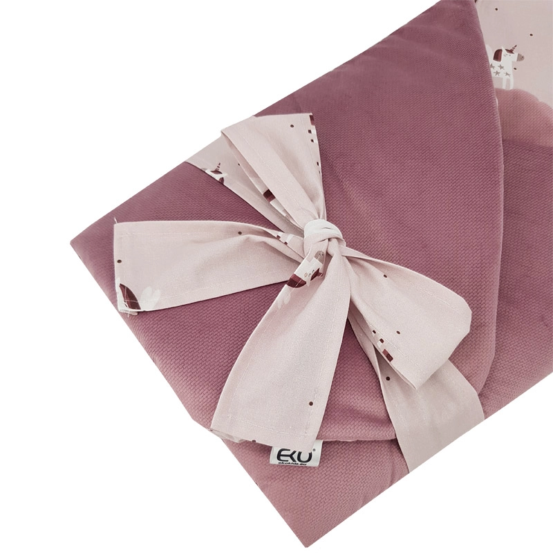 Ova premium EKO povojnica dizajnirana je za sigurno i udobno povijanje novorođenčeta. Vanjska strana od mekog velura nježna je na dodir, a unutarnja podstava od kvalitetne pamuka s digitalnim tiskom prozračna je i blaga prema osjetljivoj koži. Integrirani, ali lako izmjenjivi kokosov umetak pomaže roditeljima pri sigurnijem držanju bebe i daje povojnici formu.