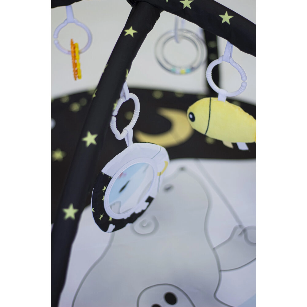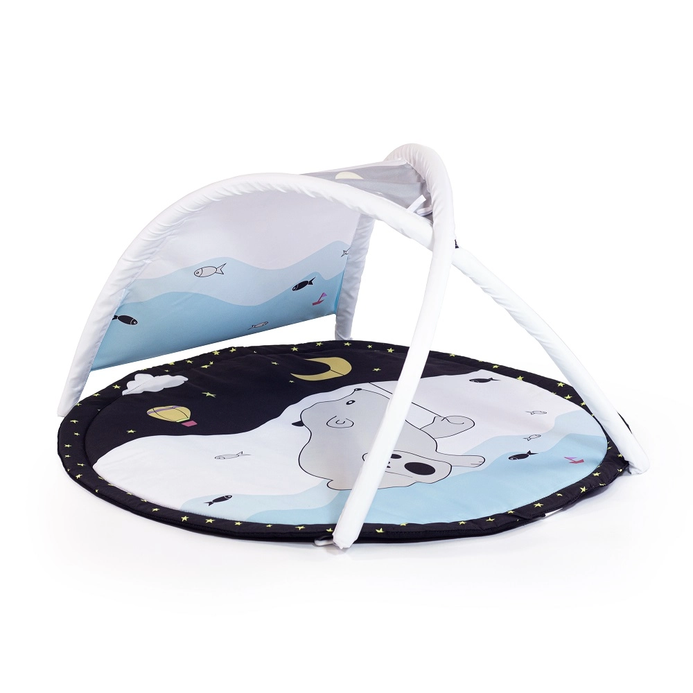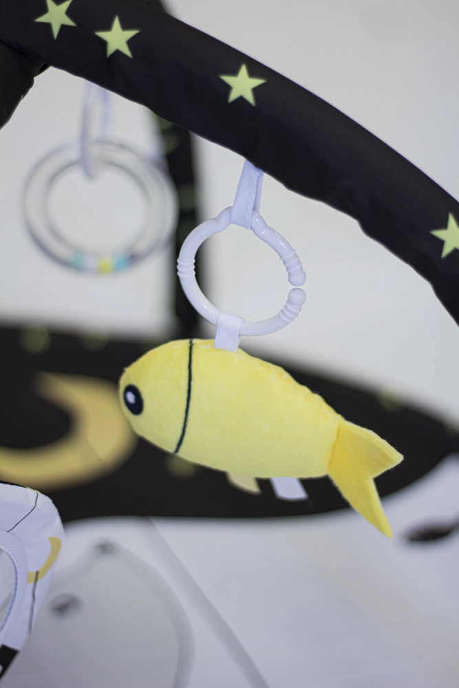 Zahvaljujući dvama odvojivim lukovima i četirima visećim igračkama na C-prstenovima dijete vježba hvat, koordinaciju oko–ruka i motoriku. Varijabilna konstrukcija omogućuje tri načina korištenja: klasičnu podlogu s lukovima, podlogu s zasjenjenjem i tipi šator za maštovitu igru.