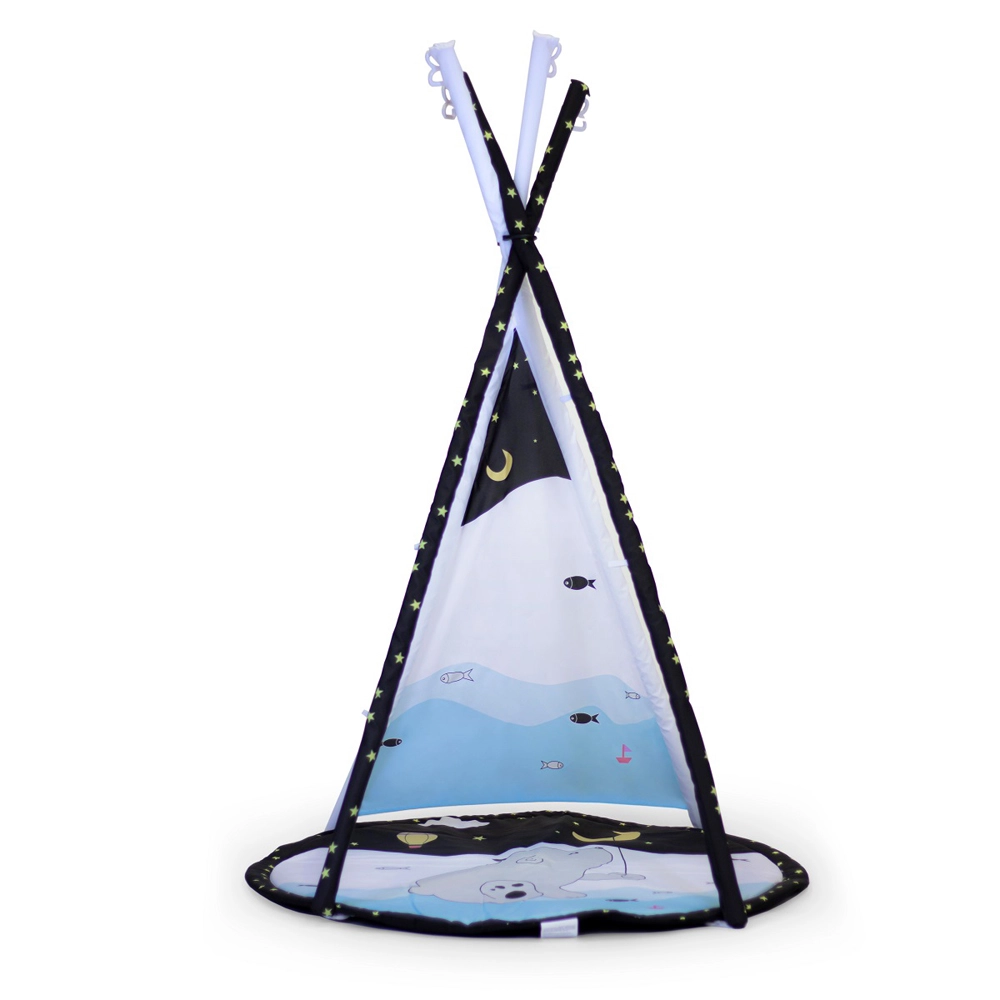Ova svestrana igraća podloga 3u1 raste s vašom bebom – od prvih otkrića preko aktivne igre ispod lukova do pustolovina u tipi šatoru. Velikodušna površina i mekana podloga osiguravaju udobnost pri ležanju i sjedenju, dok kontrastni crno-bijeli elementi potiču razvoj vida novorođenčadi.