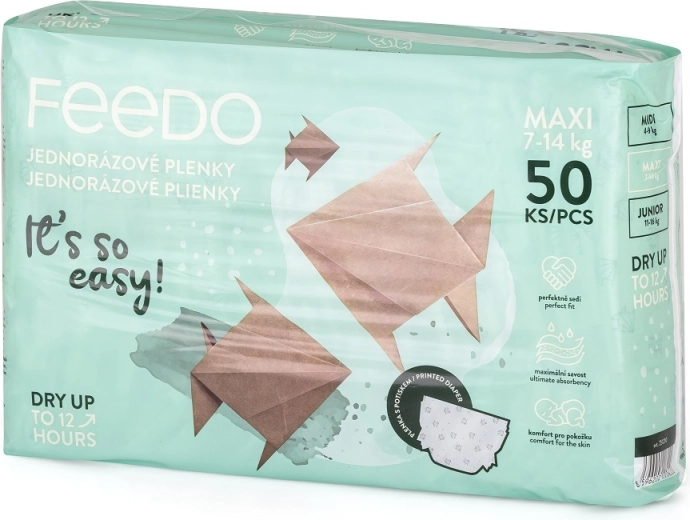 Priuštite svojoj bebi cjelodnevnu udobnost s jednokratnim pelenama FEEDO Maxi 4 za djecu težine 7–14 kg. Nude do 12 sati zaštite, brzo upijanje vlage i prozračne materijale nježne prema osjetljivoj koži. Zahvaljujući fleksibilnim trakama savršeno pristaju i pouzdano štite od curenja danju i noću.