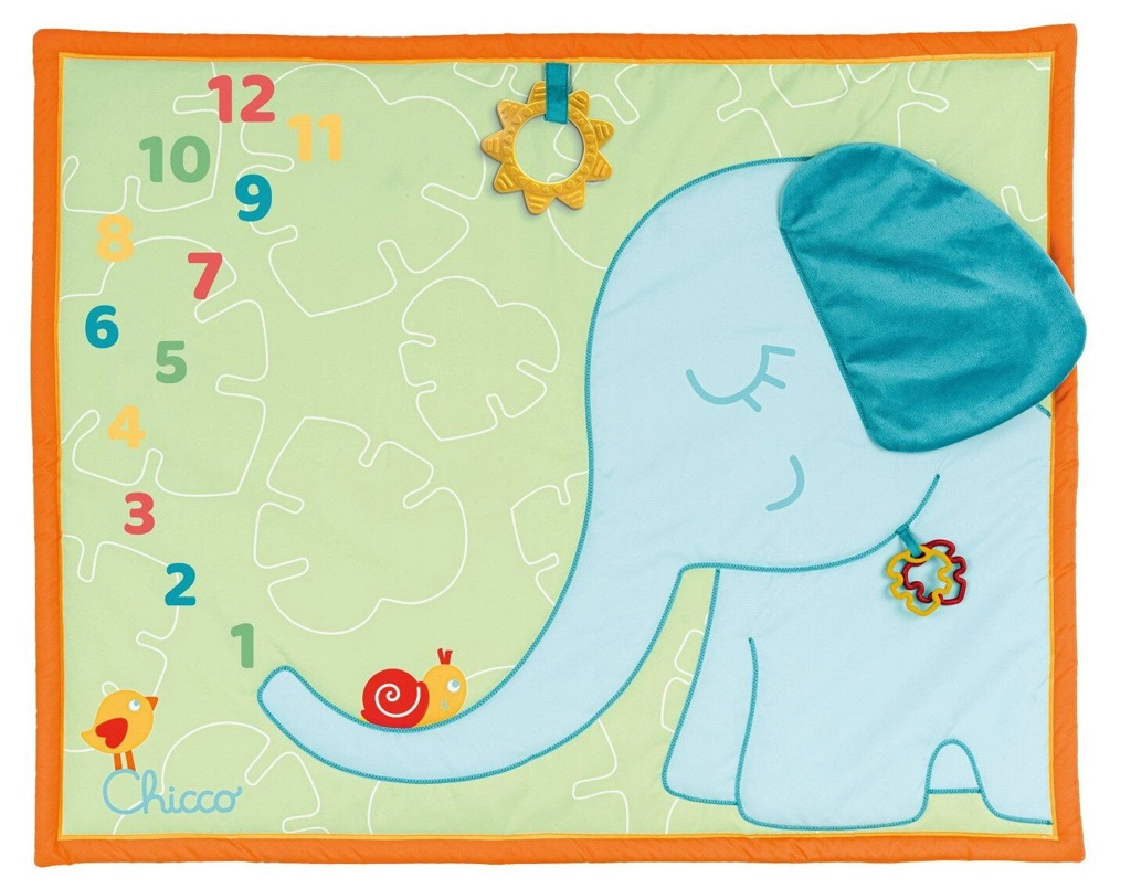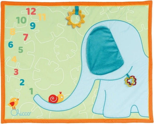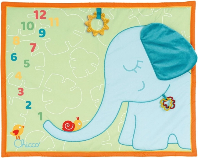 Ovaj stilski i održivi prekrivač s prekretnicama brenda CHICCO spaja udobnost, igru i mogućnost lijepog dokumentiranja rasta bebe iz mjeseca u mjesec. Šareni motiv sa slonom, otisak brojeva 1–12 i praktični prsten–sunce pretvaraju svako fotografiranje u radosnu uspomenu. Mekano podstavljanje idealno je za vrijeme na trbuščiću, prve okrete i zabavno istraživanje tekstura.