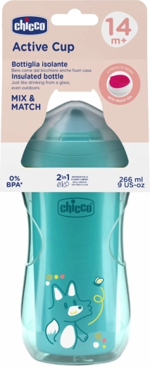 Chicco Active je izdržljiva termalna čaša osmišljena za djecu od 14 mjeseci koja uče piti samostalno. Tanki tvrdi usnik s čvrstim rubom pomaže prijelazu na pijenje kao iz obične čaše, dok pouzdan ventil smanjuje curenje tijekom pijenja i kretanja. Ergonomski oblik dobro leži i u malim ručicama.