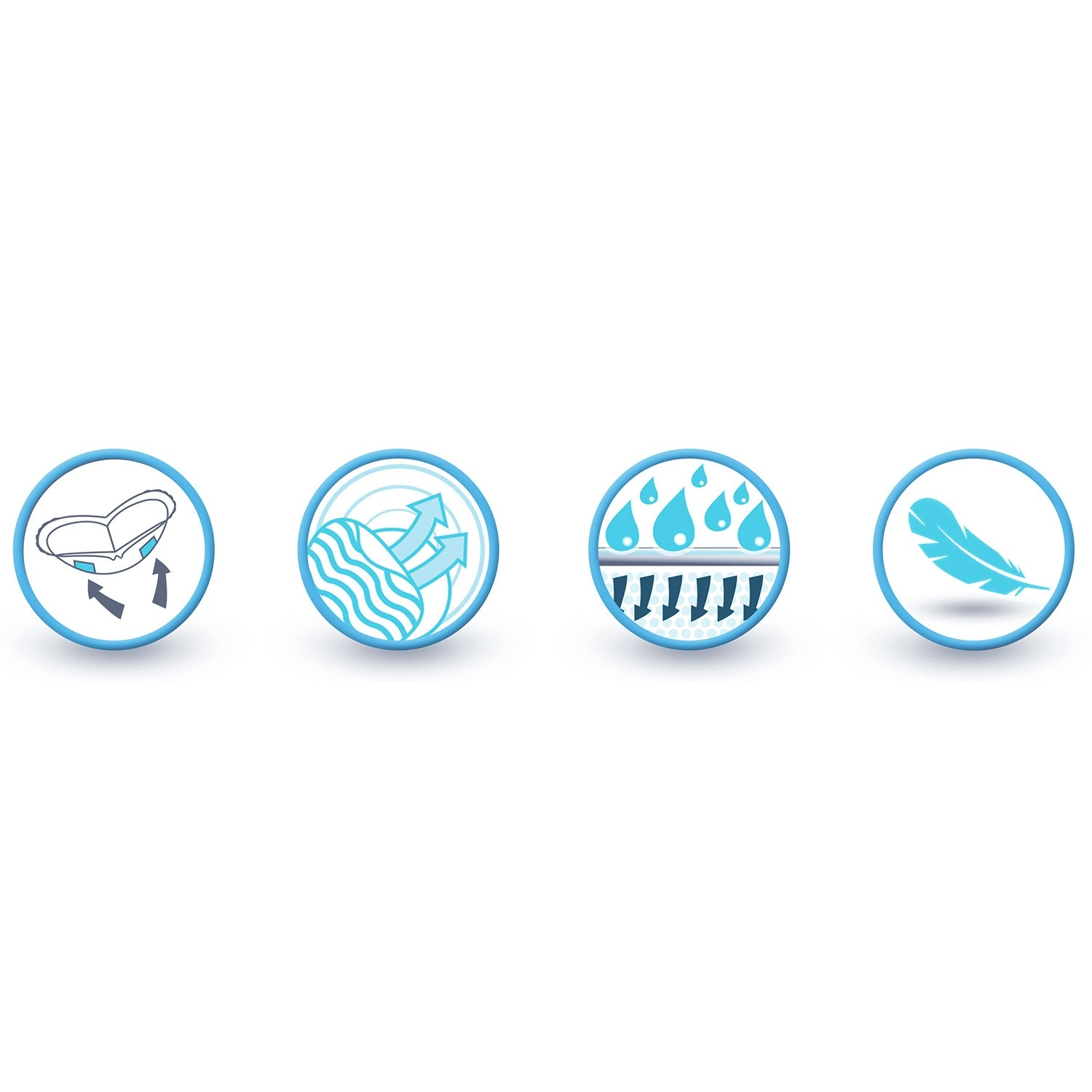 Lagani, višeslojni i prozračni materijali podupiru cirkulaciju zraka i brinu o higijeni. Samoljepljive trake drže uložak sigurno na mjestu i pri cjelodnevnom nošenju. Svaki je komad higijenski i diskretno pakiran, stoga je idealan i za putovanja ili torbu za brzu zamjenu.