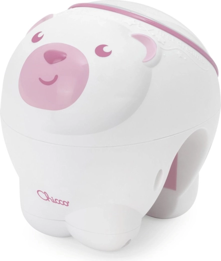 Chicco projektor polarne svjetlosti u simpatičnom dizajnu medvjedića stvara ugodnu atmosferu za večernje umirivanje i san. Šarena, dinamična projekcija nalik polarnoj svjetlosti pretvara dječju sobu u čarobno mjesto, dok odabrane melodije Mozarta, Bacha, Glinke i umirujući zvukovi prirode pomažu bebi lakše zaspati.