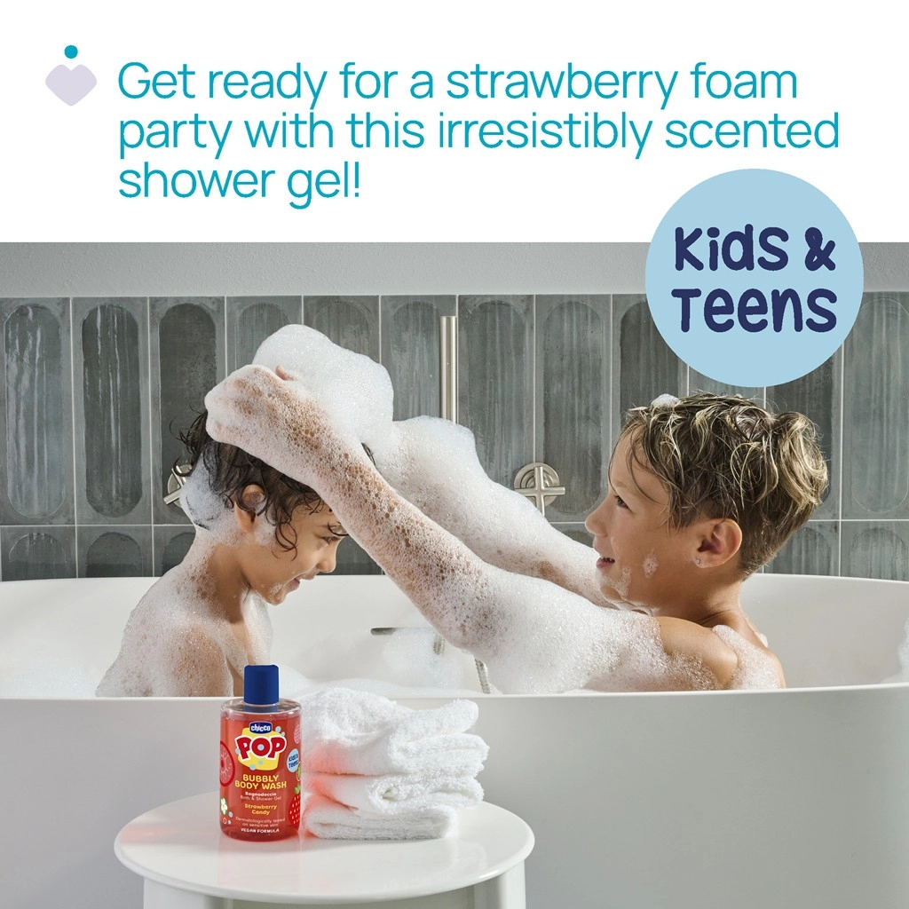 Chicco POP Strawberry Candy pretvara svako tuširanje u mirisni ritual pun radosti. Lagana, bogata pjena nježno čisti i ostavlja kožu mekom i svježe mirisnom slatkim mirisom jagode koji će djeca i tinejdžeri obožavati.