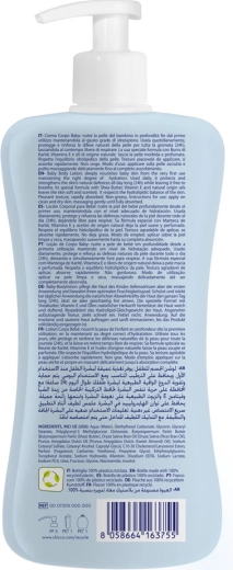 Nježni dječji losion za tijelo CHICCO Natural Sensation s karite maslacem i vitaminom E njeguje osjetljivu kožu od rođenja. Pruža dugotrajnu hidrataciju, jača kožnu barijeru i pritom je ostavlja da slobodno diše. Ima nemasnu, brzo upijajuću teksturu i ostavlja kožu mekanom i svilenkastom.
