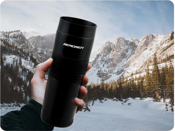 Lagana i izdržljiva termos boca BERDSEN zapremnine 590 ml održava topla pića do 12 sati i hladna do 24 sata. Zahvaljujući dvoslojnoj konstrukciji od nehrđajućeg čelika, neklizajućem prianjanju i nepropusnom poklopcu s gumbom idealna je za putovanja, sport i vožnju autom. Dio opreme je izvlačna slamka za udobno pijenje bez naginjanja boce.