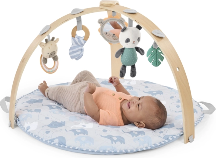 Luksuzno mekana i prostrana podloga s oblajkastom teksturom osigurava bebi udobnost od rođenja do 36 mjeseci. Minimalistički, obostrani uzorak uklapa se u svaki interijer, dok čvrsti drveni luk s igračkama potiče koordinaciju oka i ruke, hvatanje i praćenje.