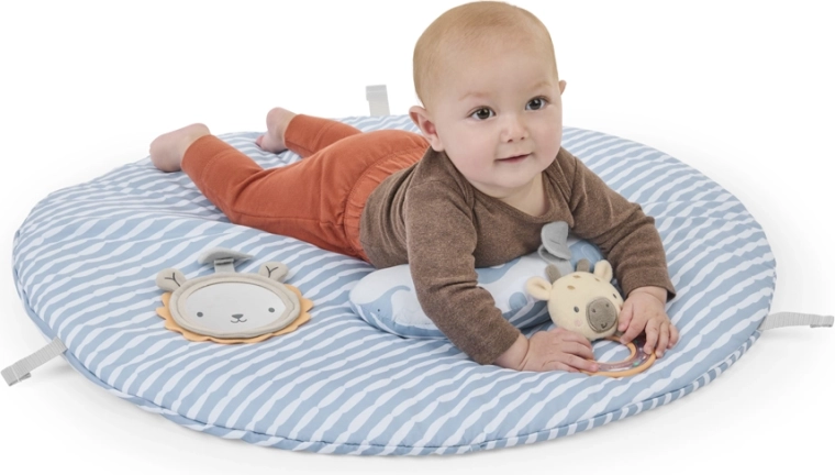 Podržava prirodan razvoj od prvih dana: udobno ležanje, poticajan tummy time s potpornim jastučićem i sigurno sjedenje s igračkama nadohvat ruke.
