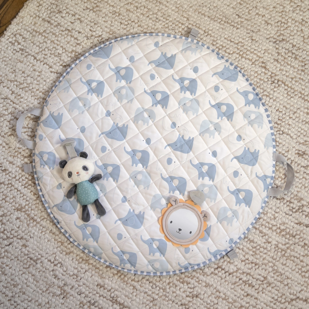 Luksuzno mekana podloga s dvama neutralnim uzorcima, periva u perilici rublja. Sklapa se u kompaktan oblik s ručkama za lako prenošenje.