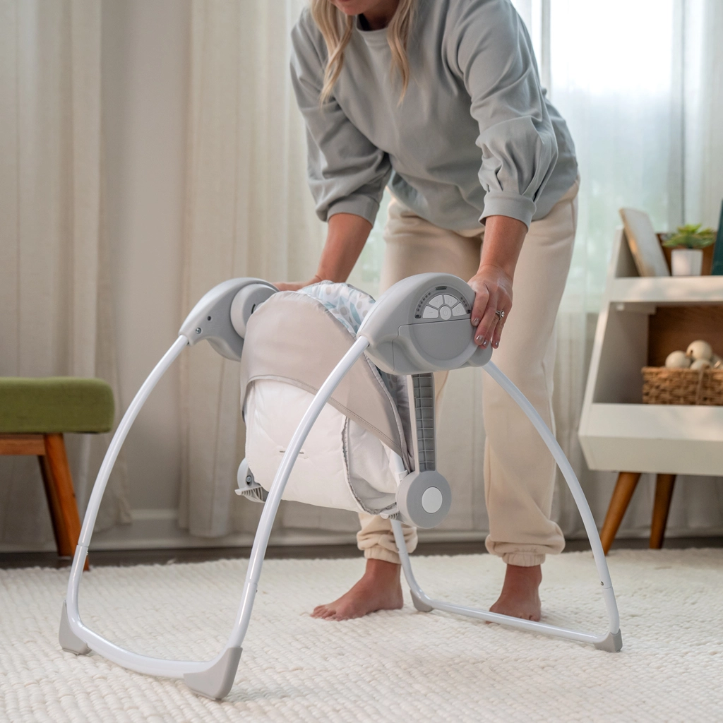 Praktična i prijenosna njihalica za novorođenče do 9 kg pruža nježno umirujuće njihanje, ugodnu glazbu i zabavne igračke za vizualnu i slušnu stimulaciju. Tehnologija WhisperQuiet2 osigurava tihi rad, tako da ništa ne ometa san ni vrijeme odmora. Zahvaljujući kompaktnom sklopivom dizajnu lako je ponesete kamo god krenete – k baki i djedu, na vikendicu ili u manji stan.