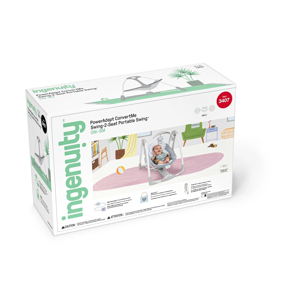 INGENUITY Swell 2-u-1 u trenu se pretvara iz umirujuće ljuljačke u stacionarnu ležaljku. Neutralan, elegantan dizajn s nježnim vezenim detaljima sjajno se uklapa u svaki interijer i oduševit će roditelje i djecu. Rad osigurava tehnologija WhisperQuiet za maksimalan mir, dok podesivi timer ljuljanja (30/45/60 min) i automatsko isključivanje nakon 90 minuta štede energiju i vašu pažnju.