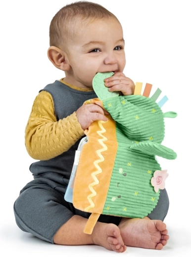 Otkrijte nježni svijet Calm Springs s plišanom knjižicom koja umiruje desni i istovremeno potiče bebinu znatiželju. Integrirana grickalica u obliku kaktusove grančice je bez BPA i ima različite strukture za masažu desni. Mekani materijali i izražajni detalji potiču osjetilnu stimulaciju i sigurnu igru od rođenja.