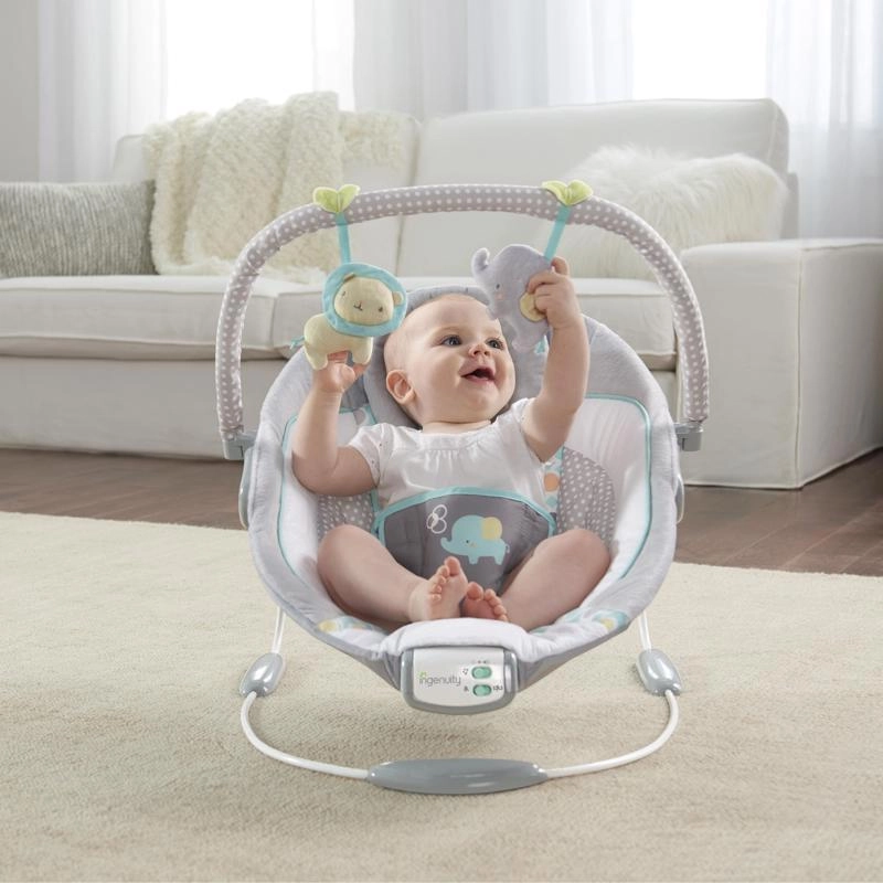 Umirite svoju bebu u udobnosti s ležaljkom Ingenuity Morrison, koja nudi nježne vibracije, 7 umirujućih melodija s automatskim isključivanjem nakon 15 minuta i mekani baršunasti navlaka za maksimalnu udobnost. Zahvaljujući odvojivoj prečki s dvije igračke, trodijelnom sigurnosnom pojasu i protukliznim nožicama sigurna je, praktična i idealna od rođenja do 9 kg.