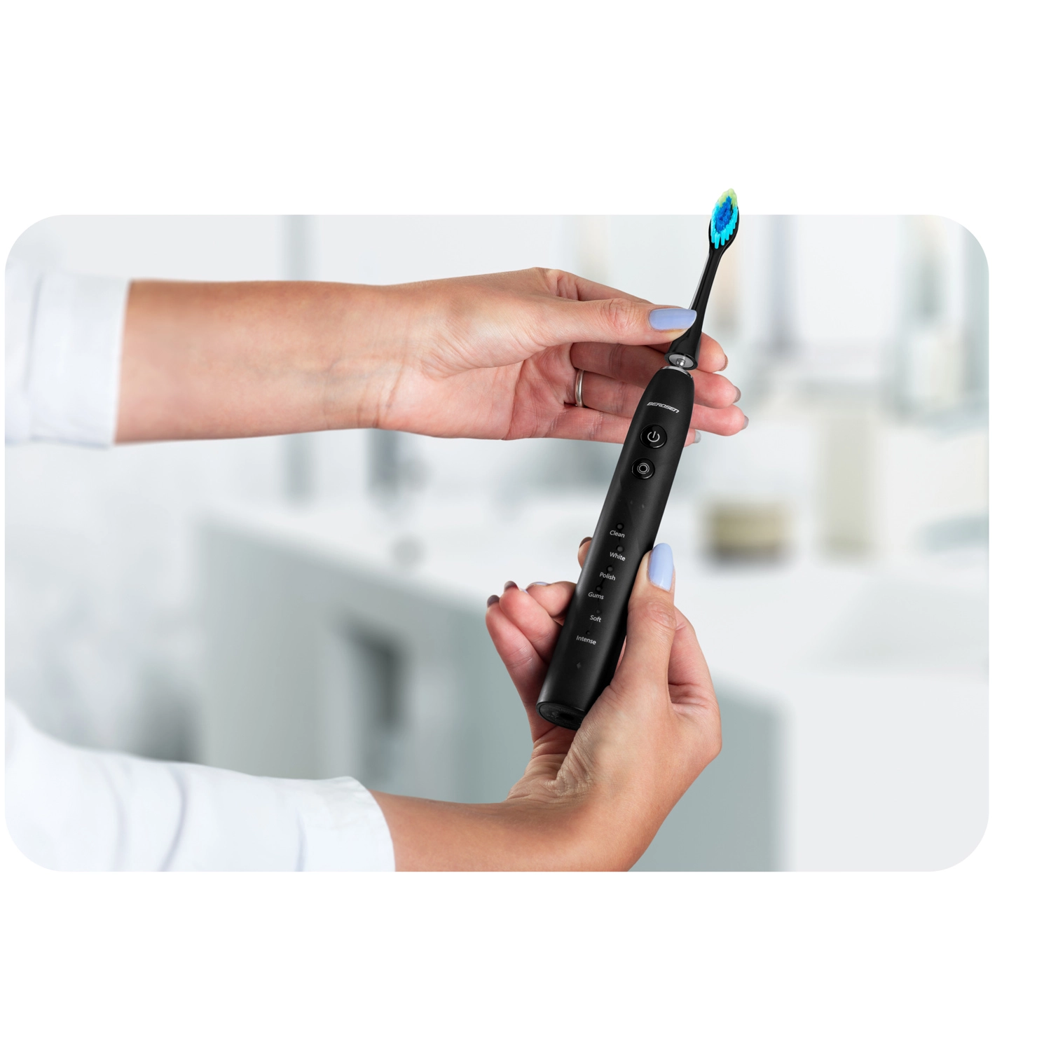 - Nježna prema desnima: uklanja višestruko više plaka od manualne četkice, a pritom je blaga prema caklini.