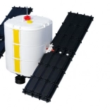 Konstrukcija satelita obuhvaća solarne panele koji ilustriraju dobivanje energije u orbiti.