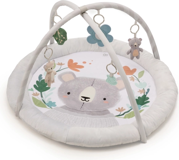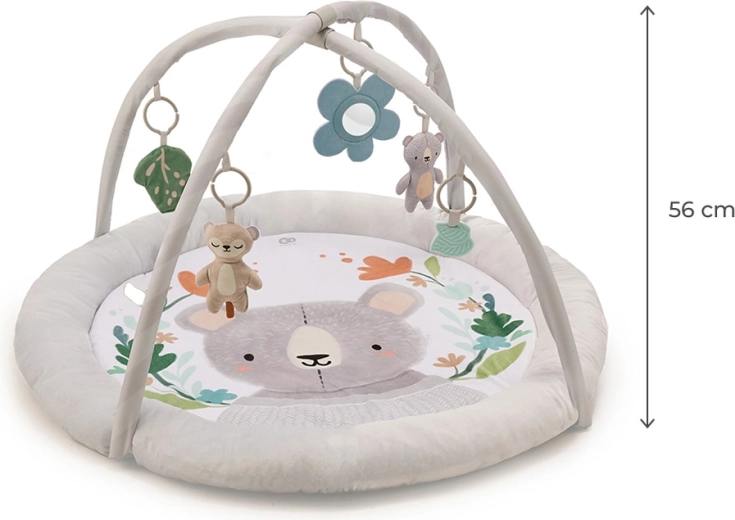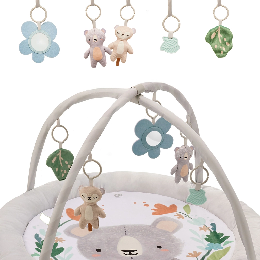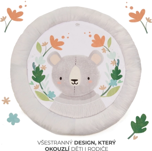 Podloga za igru COZYPLAY spaja udobnost, sigurnost i dizajn. Okrugla, bogato podstavljena površina s ilustracijama europskog umjetnika stvara ugodno mjesto za igru na trbuščiću, prve hvatove i opuštanje. Dva mekana luka omogućuju raznoliko vješanje igračaka te tako prilagodbu podražaja dobi i vještinama bebe.