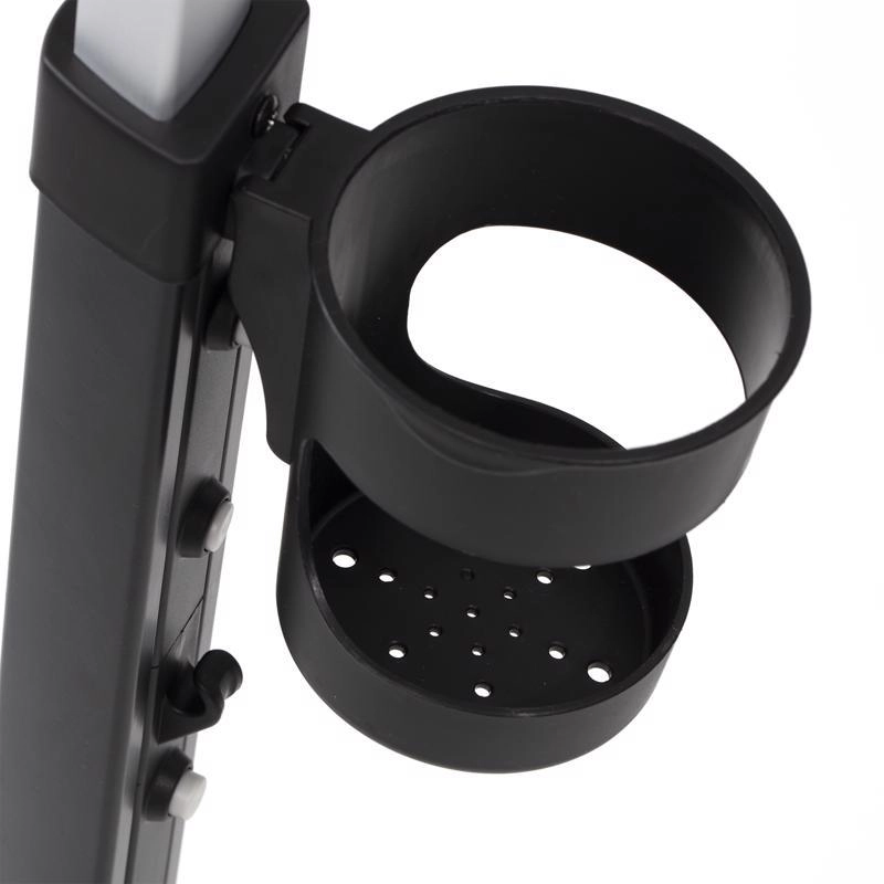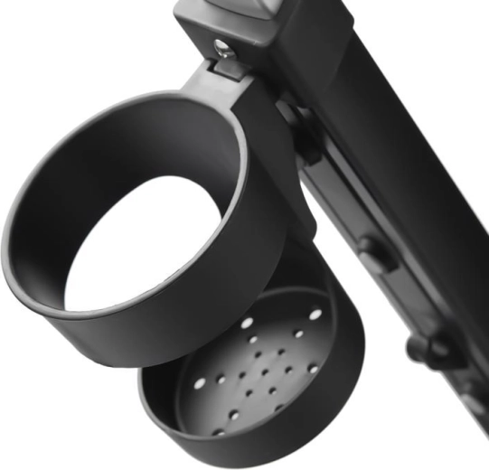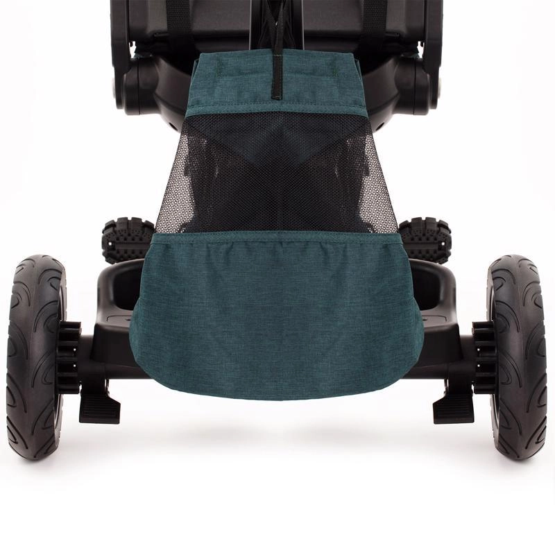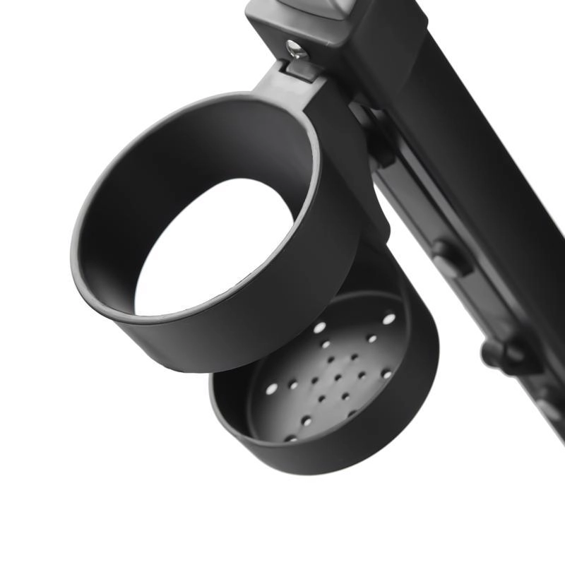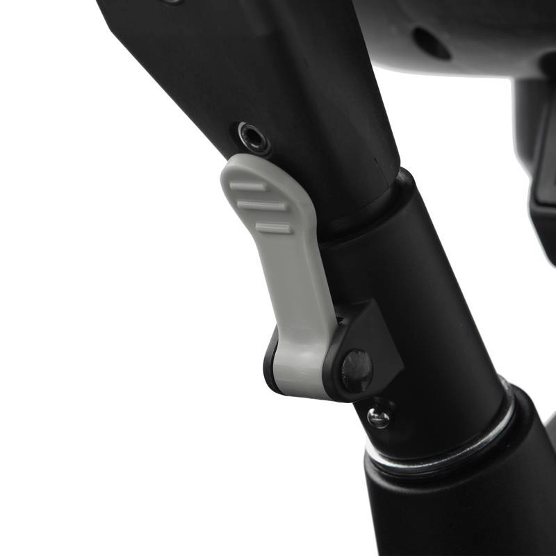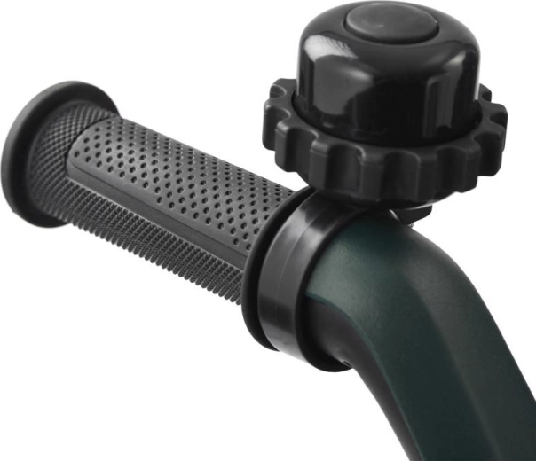 Teleskopska ručka s gumbima za brzo podešavanje, parkirna kočnica i bogat pribor: držač za piće, zvonce, torba/ruksak i košarica.