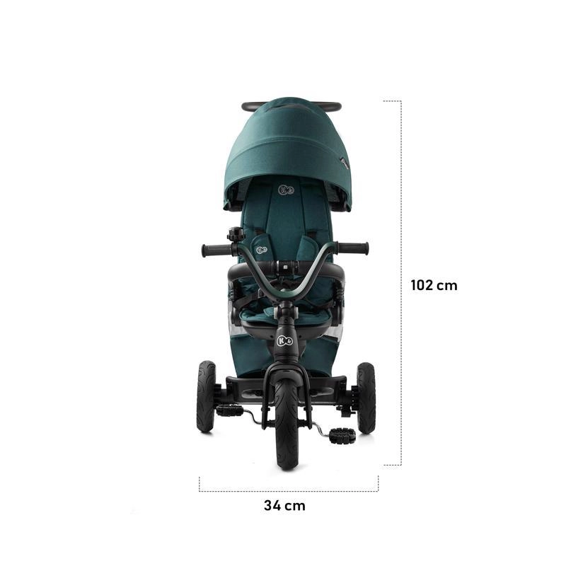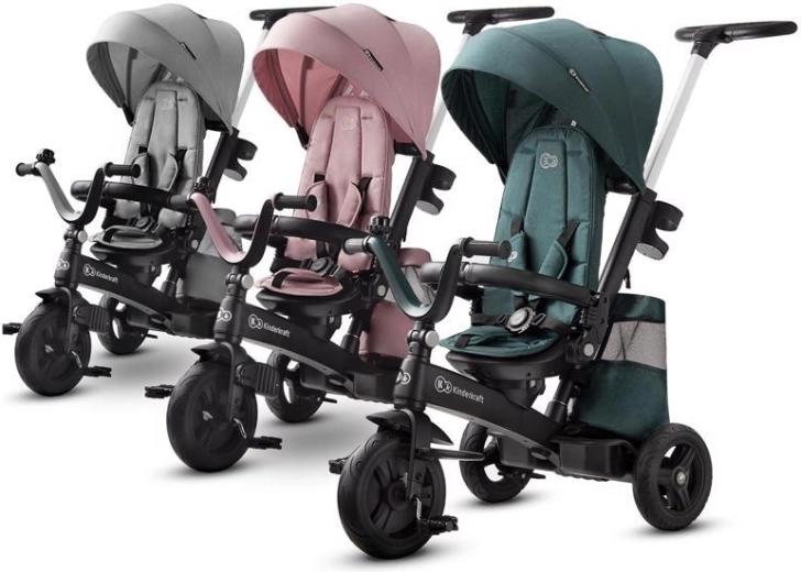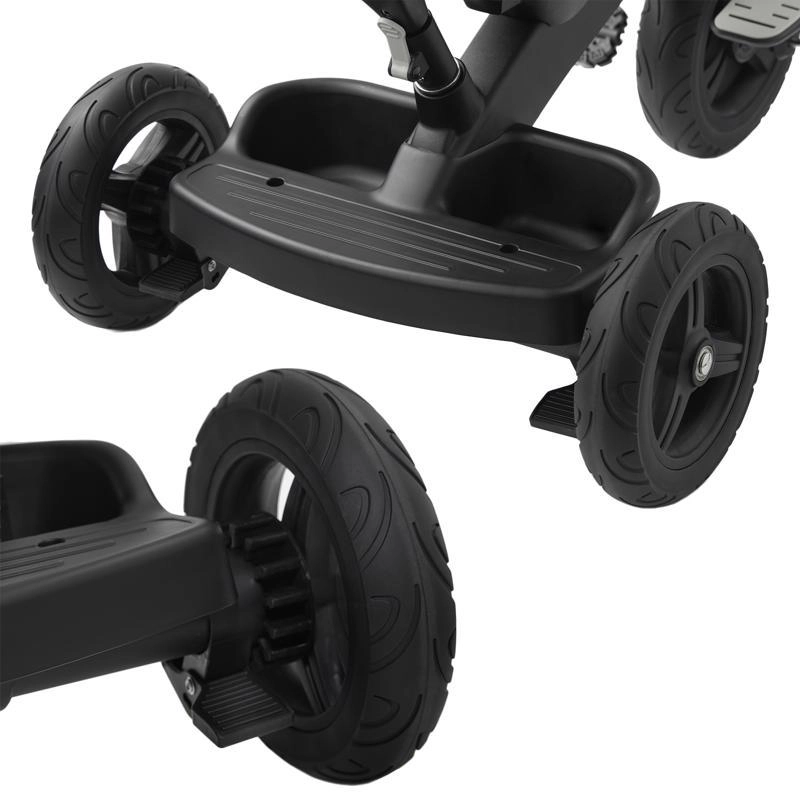 Ova premium trokolica kombinira prednosti kolica i bicikla. Modularna konstrukcija omogućuje lako prilagođavanje konfiguracije dobi i sposobnostima djeteta – od vožnje pod nadzorom roditelja do samostalnog pedaliranja. Rotirajuće sjedalo 360° (CLICK&TWIST) olakšava promjenu smjera u trenu, visoki naslon s mogućnošću spuštanja u poluležeći položaj osigurava udobnost i tijekom sna, a sigurnosni pojasevi u pet točaka s mekanim zaštitama drže dijete na sigurnom.