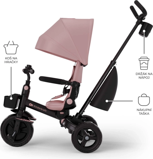 Multifunkcionalni tricikl Kinderkraft AVEO 2 PLUS idealan je suputnik od 9 mjeseci do 5 godina. Nudi sjedalo koje se okreće 360°, položaj ležanja, krović s UPF50+ i roditeljski nadzor upravljanja. Zahvaljujući brzom sklapanju, petotočkovnim pojasevima i bogatoj opremi (torba, zvonce, držač za napitke, košarice) osigurava udobnost, sigurnost i praktičnost pri svakoj šetnji.
