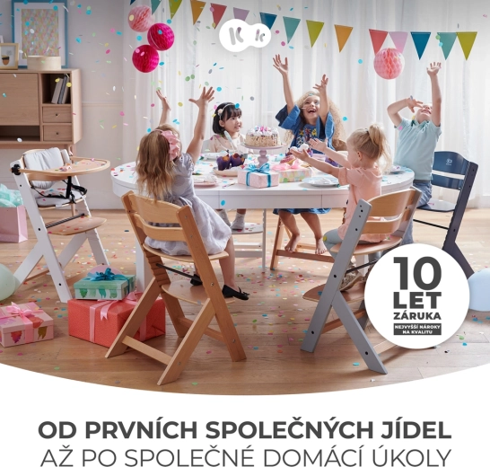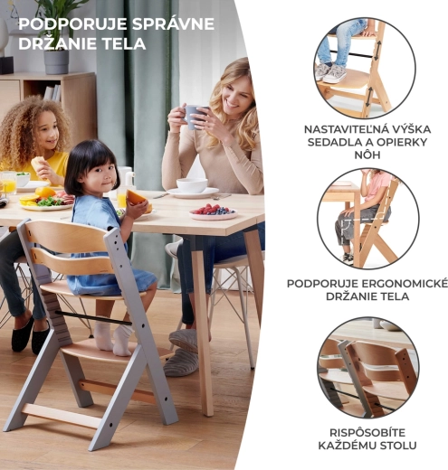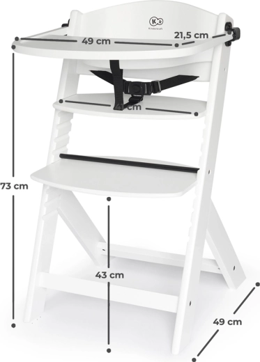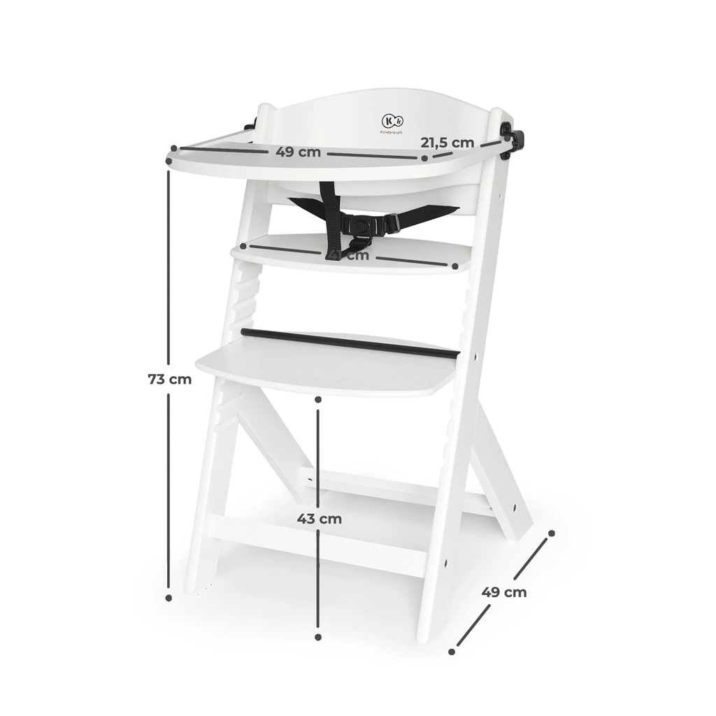 Kinderkraft Enock bezvremenska je visoka hranilica koju lako pretvarate u ergonomsku stolicu za starije dijete. Zahvaljujući petostupanjskom podešavanju naslona, podesivom osloncu za noge i širokom sjedalu savršeno se prilagođava dobi i visini djeteta. Masivna bukovina i kvalitetna šperploča jamče iznimnu stabilnost i dug vijek trajanja.