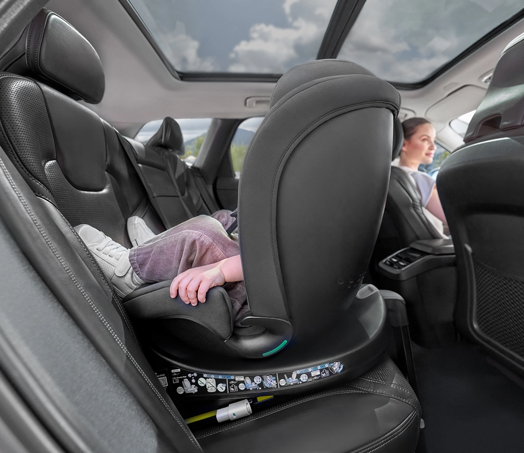 Ugradnja je sigurna i brza zahvaljujući ISOFIX konektorima i potpornoj nozi. Dijete može putovati suprotno smjeru do 105 cm, što se smatra najsigurnijim načinom prijevoza. Četverostupanjski nagib naslona pomaže spriječiti klonulost glavice tijekom spavanja, a integrirano podešavanje naslona za glavu s EPS-om i pojaseva jamči precizno prianjanje na svakoj visini.