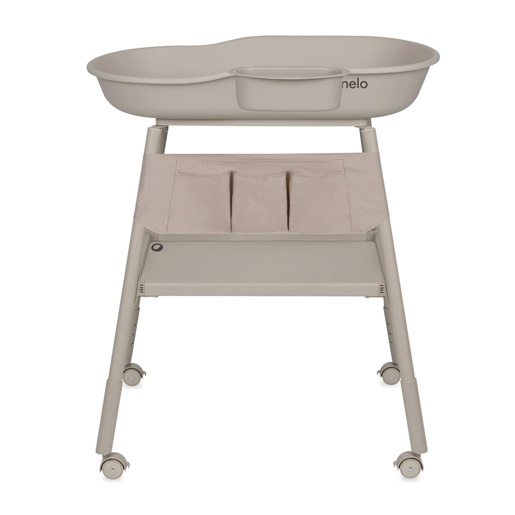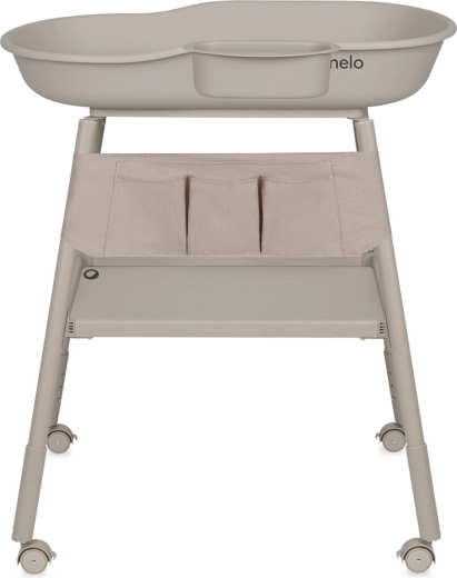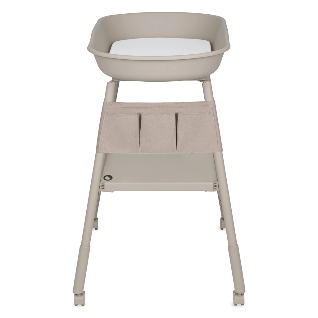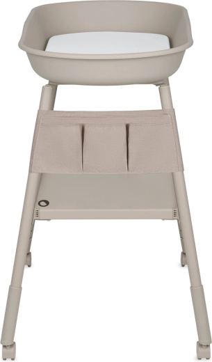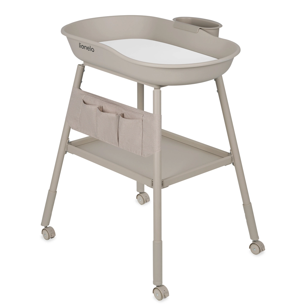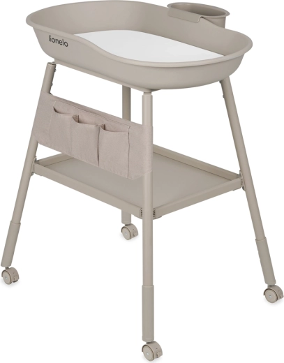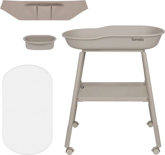 Praktičan stolić za presvlačenje Lionelo Rosie u nijansi Beige Sand kombinira povišene sigurnosne rubove, laku pokretljivost na 4 kotača s kočnicama i obilan prostor za pohranu. Uključuje pjenasti madrac s vodootpornom navlakom, podesivu visinu nogu za ergonomičnu njegu, tekstilni organizator s 5 pretinaca te odvojivu bočnu posudu za kozmetiku ili vodu. Stabilna čelična konstrukcija osigurava sigurnost i udobnost pri svakodnevnom presvlačenju.