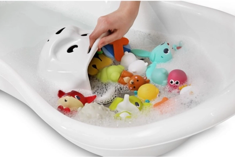 Široki otvor olakšava skupljanje igračaka, ulijevanje vode i pjene. Djeca uživaju u kupanju, a vi imate uredno.