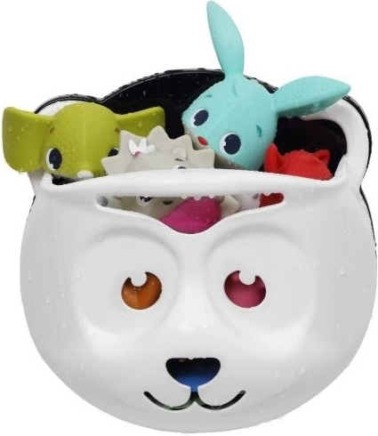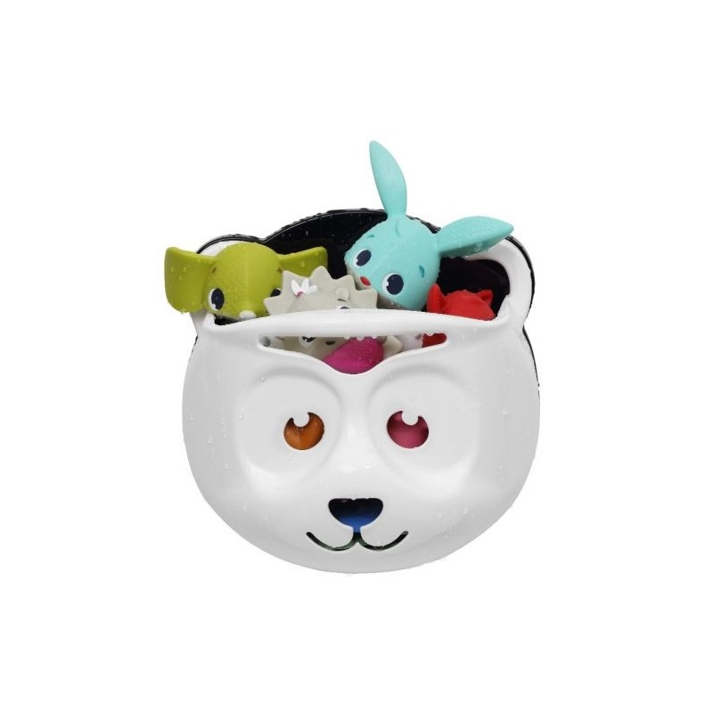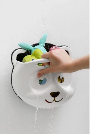 Pretvorite pospremanje nakon kupanja u igru. Organizator u obliku pande prima sitnije kupaće igračke i dodatke koje nakon kupanja jednostavno odložite unutra. Zahvaljujući promišljenim drenažnim otvorima voda brzo otječe, a igračke se lakše osuše. Vakuumske čašice omogućuju lako i neinvazivno pričvršćivanje na glatke površine, a držač je moguće ugraditi i fiksno pomoću tipli.