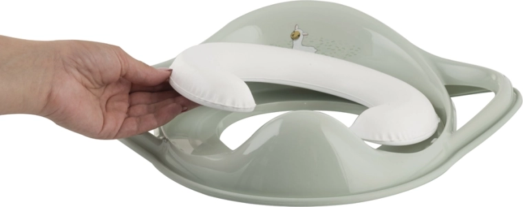 Zahvaljujući univerzalnim dimenzijama pristaje većini WC daski. Redukciju je moguće lako objesiti ili odložiti pokraj toaleta, a jednostavna je za čišćenje – meki dio se može skinuti radi temeljite higijene. Dizajn poštuje anatomske razlike djevojčica i dječaka, pa je sjedalo udobno za svu djecu.