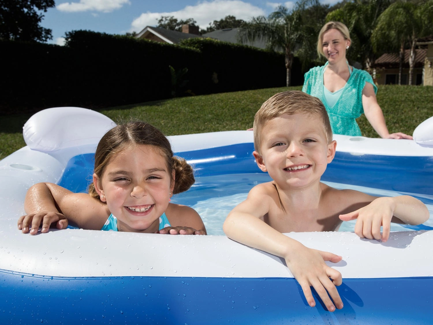 Ovaj nafukavajući vrtni bazen idealan je za obiteljsku zabavu i opuštanje. Dvije odvojene zračne komore pružaju stabilnost, povišene bočne stijenke služe kao ugodan naslon za leđa, a integrirana sjedala s jastucima omogućuju bezbrižno ljenčarenje u osvježavajućoj vodi. Zahvaljujući robusnom vinilu, bazen je izdržljiv, lako se čisti i odlično se uklapa u svaki vrt.