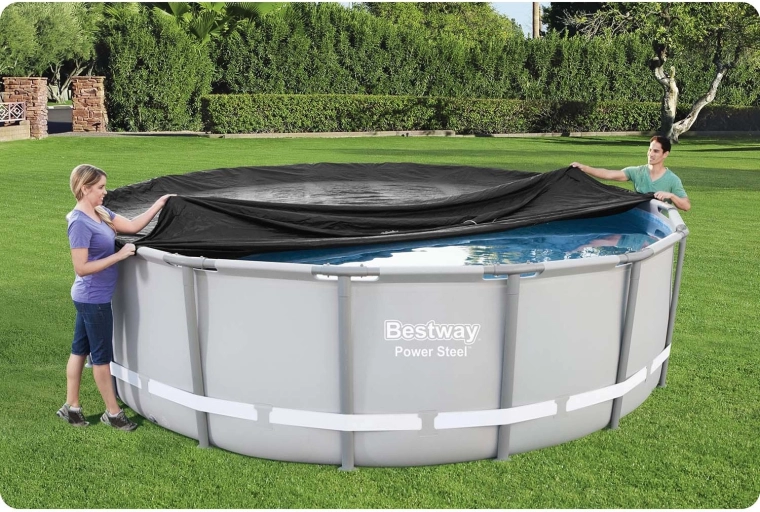 Pomoću remenih/užetnih vezica pokrivač lako zategnete oko ruba bazena, pa ostaje na mjestu i pri vjetru. Redovita upotreba pokrivača znatno smanjuje količinu lišća i nečistoća u vodi te ujedno ograničava isparavanje, čime pomaže uštedjeti kemiju i vrijeme provedeno čišćenjem.