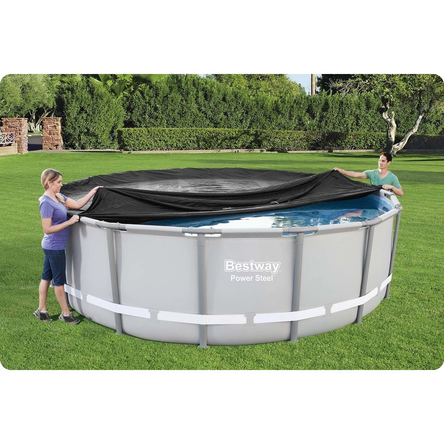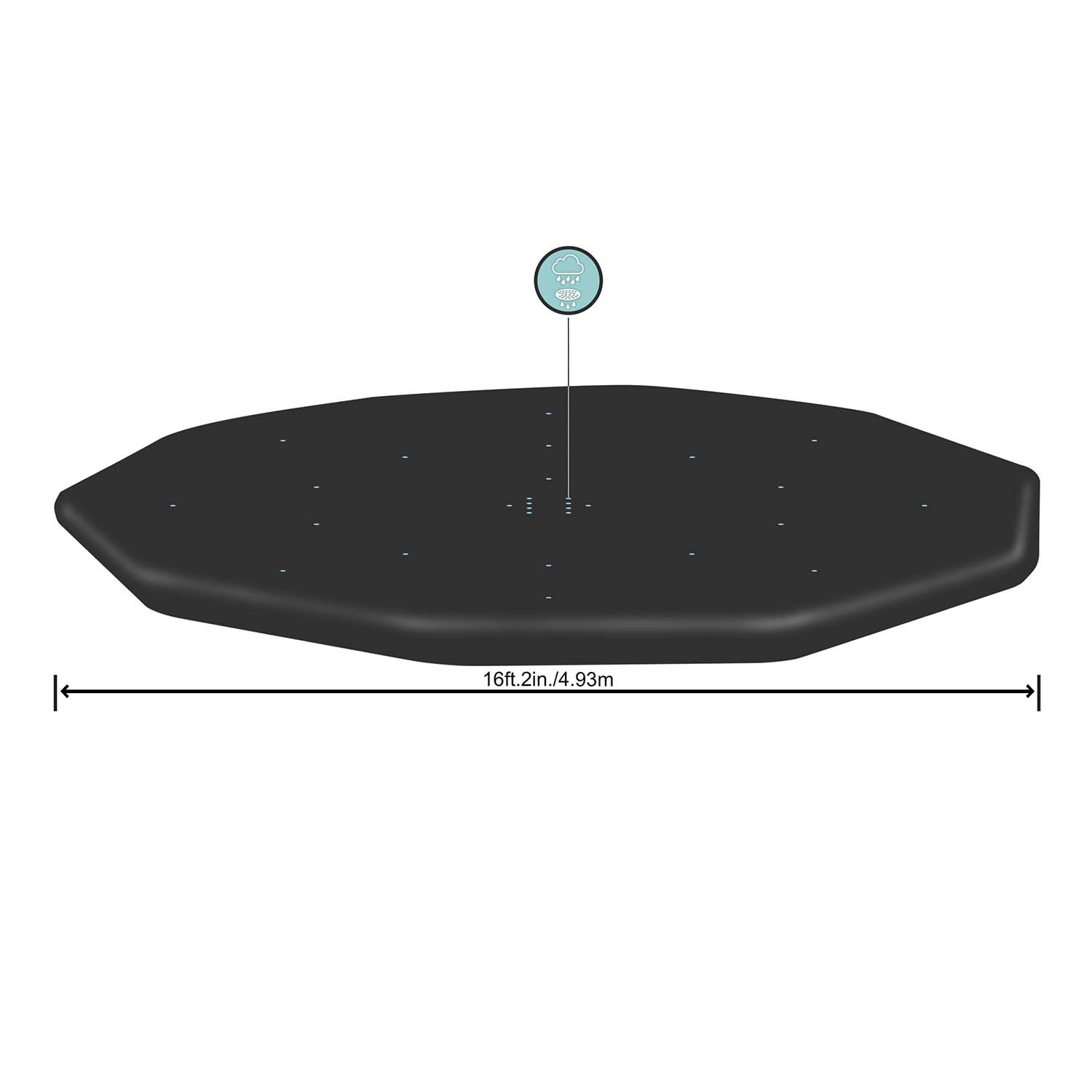 Pouzdan pokrivač za bazen nužan je dodatak za svakoga tko želi vodu dulje održati čistom i smanjiti troškove održavanja. Ovaj pokrivač za okrugle okvirne bazene promjera 488 cm izrađen je od čvrstog PE koji odolijeva vremenskim uvjetima i UV zračenju, a zahvaljujući odvodnim otvorima kišnica se ne zadržava na površini.