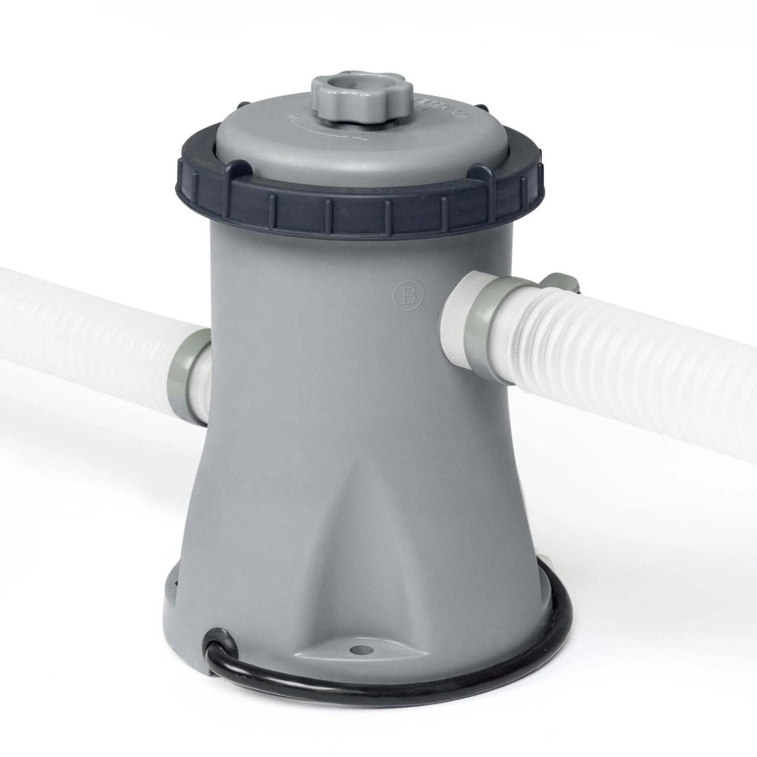 Uređaj je kompatibilan sa širokim rasponom okruglih, pravokutnih i okvirnih (stelažnih) bazena. U pakiranju se nalaze 2 crijeva (Ø 32 mm), 4 stezaljke i košarice/sita usisa i tlačnog izlaza za sigurno i nepropusno spajanje. Izdržljivo plastično kućište i kompaktne dimenzije omogućuju stabilno postavljanje pokraj bazena i besprijekoran rad tijekom cijele sezone.