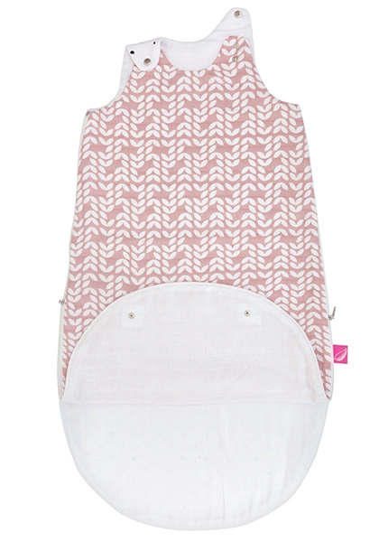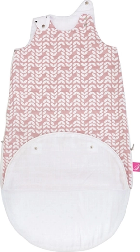 Promišljeni detalji poput drukera na ramenima za smanjenje otvora oko vrata i donjeg produžnog dijela na drukere omogućuju korištenje u dvije veličine: 3–6 mjeseci kada je donji dio zakopčan i 6–18 mjeseci kada je otvoren. Vreća je sašivena od tri sloja 100% pamučnog mušelina bez ispune – nježna, pahuljasta i blaga prema osjetljivoj koži.
