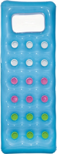 Uživajte u ljetu uz ovaj udobni napuhujući madrac za vodu. Zahvaljujući prozirnom prozorčiću u jastuku možete promatrati ispod površine, dok šarene komore osiguravaju ugodno ublažavanje i stabilnost. Izdržljiv PVC materijal, praktičan naslon za glavu i maksimalno opterećenje 90 kg čine ovaj madrac idealnim izborom za bazen i plažu. U kompletu je zakrpa za popravak.
