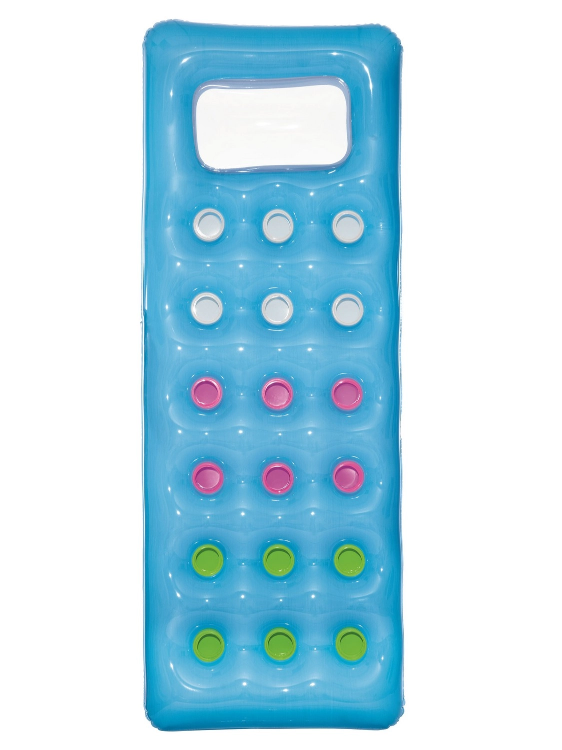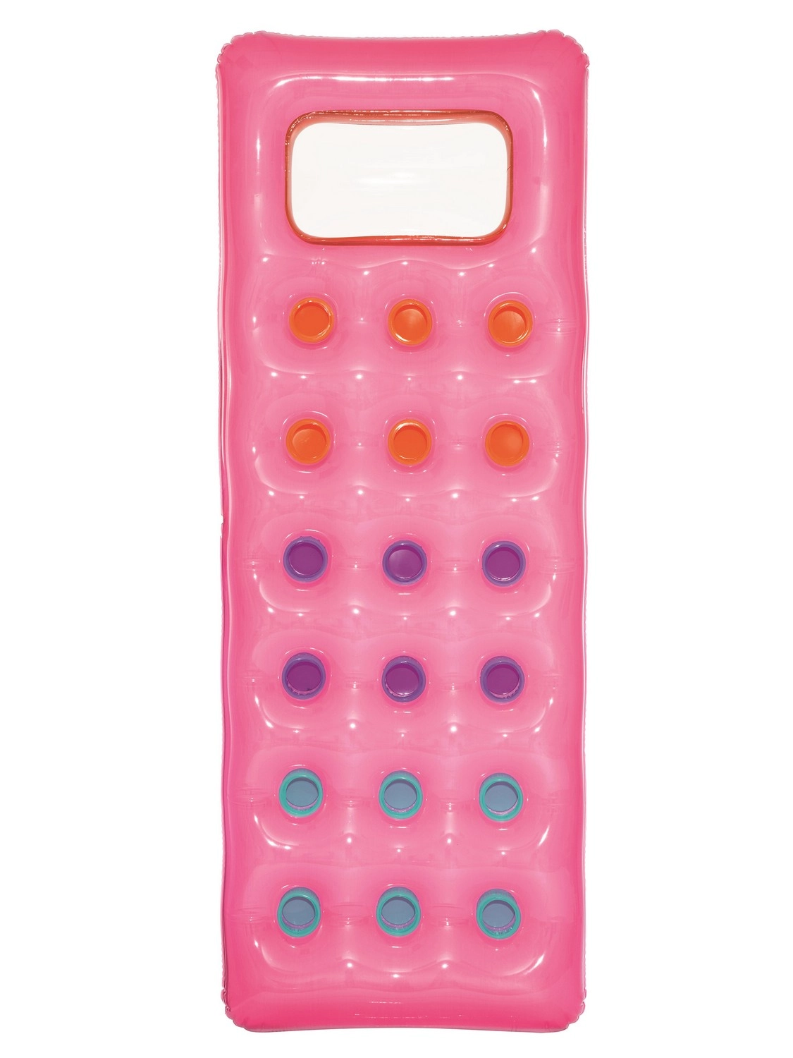 Uživajte u ljetu uz ovu udobnu nafukljivu ležaljku dimenzija 188 × 71 cm. Zahvaljujući prozirnom prozorčiću u jastuku i šarenim zračnim komorama nudi odličan pogled i udobnost pri opuštanju na vodi. Izdržljiva PVC konstrukcija s i-beam komorama osigurava stabilnost, dok niža težina i lako napuhavanje olakšavaju prenošenje i upotrebu. U pakiranju se nalazi samoljepljiva zakrpa za popravak.