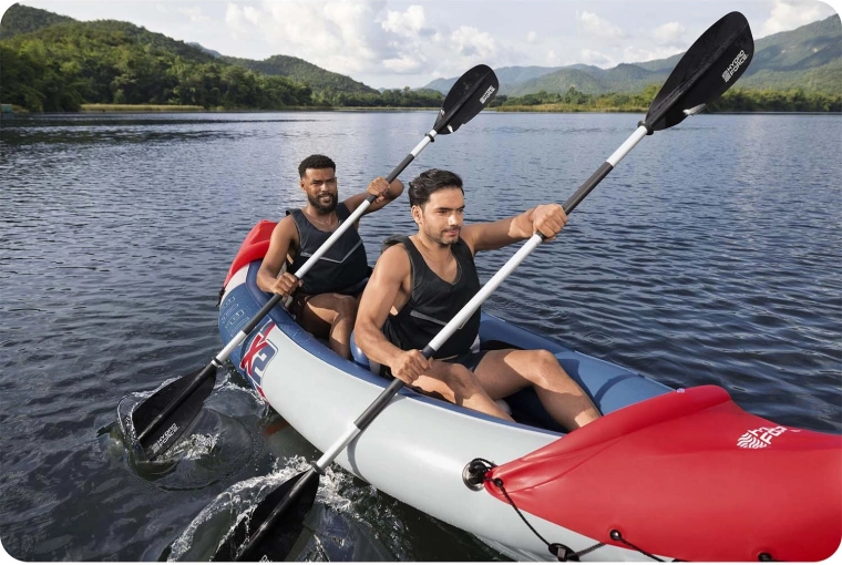 Napuhujući kajak HYDRO-FORCE Lite Rapid X2 idealan je za rekreativno veslanje na jezerima i mirnim rijekama. Zahvaljujući ojačanom Inflata‑Shield™ PVC-u kajak je izdržljiv, manje se rasteže te nudi siguran hvat i stabilnost. Napuhujuće, mekano dno daje krutost i povećava udobnost pri sjedenju.