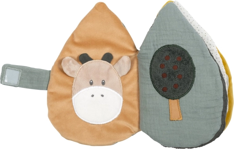 Mekana edukativna tkaninska knjižica brenda Nattou nudi sigurno ogledalce, različite teksture i životinjske motive za prirodno otkrivanje svijeta. Lagan je, lako se drži i potiče razvoj fine i grube motorike, vida i dodira. Idealna za igru kod kuće i na putovanjima.