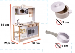 Dječja Drvena Kuhinja Lulilo Kuketo donosi beskrajne mogućnosti zabave i razvoja za vaše dijete. Ova kuhinjica ima realistične funkcije, uključujući sudoper s pipom, štednjak, mikrovalnu i prostor za pohranu u obliku polica i ormarića. Dimenzije kuhinje su idealne za malu djecu, što omogućuje lak pristup svim elementima igračke.