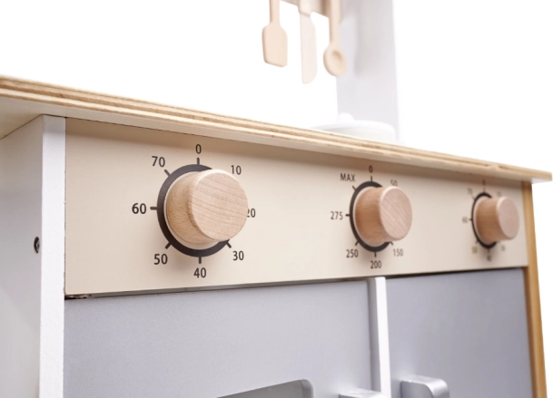 Ova kuhinjica nudi realistične funkcije, kao što su sudoper, štednjak i mikrovalna, koje djeci pripremaju na stvarnu kuhinju.