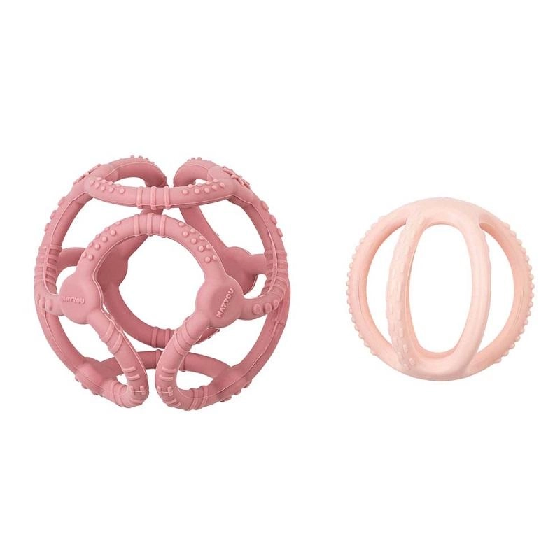 Otkrijte nježnu i sigurnu NATTOU grickalicu u obliku dviju loptica koje se mogu koristiti zajedno ili odvojeno. Različite teksture stimuliraju osjet dodira i pomažu umiriti nadražene desni, dok lagana i fleksibilna konstrukcija olakšava hvatanje i najmanjim ručicama.